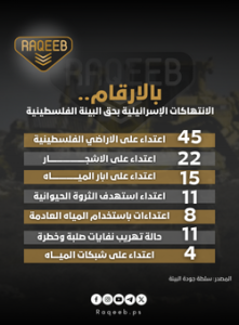 بالارقام.. الانتهاكات الإسرائيلية بحق البيئة الفلسطينية