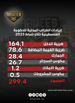 إيرادات الضرائب المحلية للحكومة الفلسطينية خلال شباط 2025