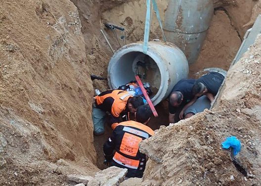ووقع الحادث إثر سقوط أنبوب صرف صحي إسمنتي ثقيل على العاملين من رافعة.