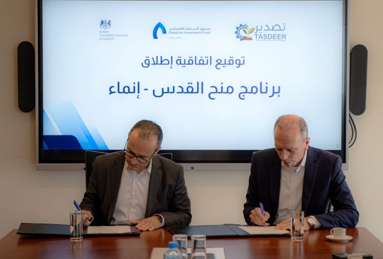 وقّع صندوق الاستثمار الفلسطيني اتفاقية مع برنامج تصدير الممول من قبل القنصلية البريطانية في القدس بهدف إطلاق مرحلة جديدة من برنامج منح القدس – إنماء، والذي يستهدف المشاريع الصغيرة والمتوسطة العاملة في محافظة القدس، من خلال تقديم منح تمويلية لتمكينهم من الاستمرارية، وتحسين العمليات التجارية، وزيادة الإيرادات، وتعزيز الكفاءة في التكاليف، وتوسيع نطاق السوق.