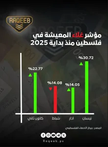 مؤشر غلاء المعيشة في فلسطين منذ بداية 2025