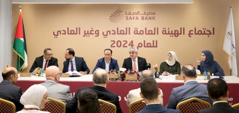 عقد مصرف الصفا اجتماع الهيئة العامة العادية وغير العادية للعام 2024 وذلك يوم الأربعاء الموافق 18 حزيران 2025، في مقر الإدارة العامة للمصرف بمدينة رام الله، وذلك بنسبة حضور 68% أصالة وشارك في الاجتماع رئيس مجلس ادارة مصرف الصفا السيد يزيد عدنان المفتي، ونائب رئيس مجلس الادارة معالي السيد” محمد كمال” حسونة ، وممثل هيئة الرقابة الشرعية الدكتور سهيل الاحمد عبر تقنية “الزوم” وثلة من أعضاء مجلس الادارة والمدير العام السيد بيان قاسم والادارة التنفيذية ، وممثل مسجل الشركات الاستاذ بلال كتانة ، وممثل عن سلطة النقد الفلسطينية السيدة اميرة الحسين ، و ممثل عن هيئة سوق رأس المال الفلسطينية السيد مراد الجدبة ، بالاضافة الى ممثل عن المدقق الخارجي -شركة ارنست ويونغ- السيد عبد الكريم محمود والمستشار القانوني الاستاذ مهند عساف بالاضافة للحضور من مساهمي المصرف.