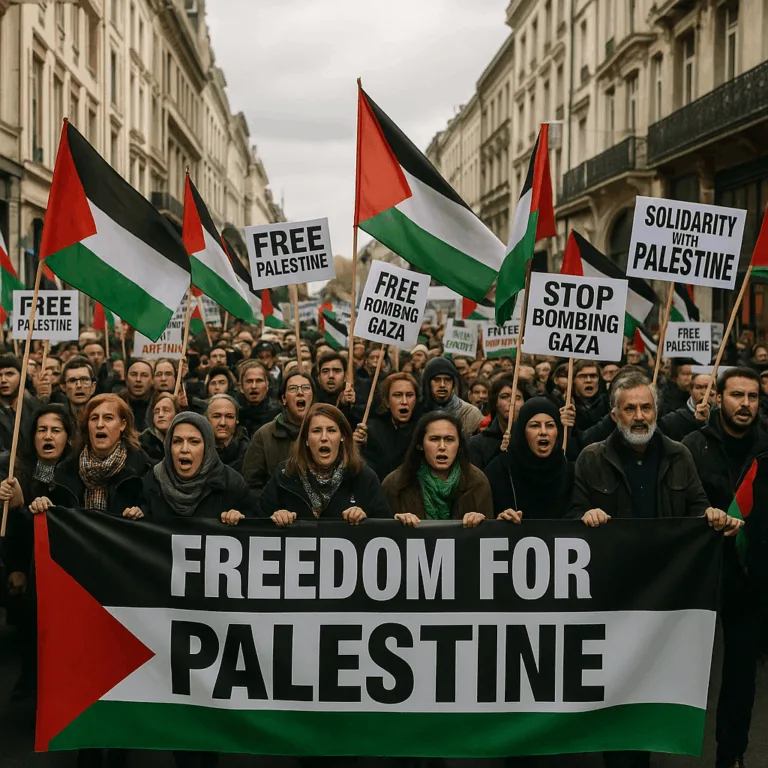 في كانون اول 2023، خرج نحو 27,000 محتج في بروكسل يطالبون بوقف دائم لحرب غزة وكانت تلك شعلة الثورة الاوروبية الكبرى، ثورة الوعي على التضليل. وفي تموز 2025، تظاهر نحو 300,000 في روما، و150,000 في لاهاي، و110,000 في بروكسل ضد دعم الحكومات للحرب، في موجة احتجاج استمرت عبر 125 مدينة أوروبية. نجوى ونقله غير متوقعه في حجم التاييد من جهة ورفض التضليل وتخفيف العقول من جهة اخرى. وقد وثّق مركز أبحاث أن الأوروبيين شاركوا في أكثر من 30,000 مظاهرة وحدث مؤيد لفلسطين عبر أوروبا خلال ال 500 يوم الاولى من العدوان على غزة.