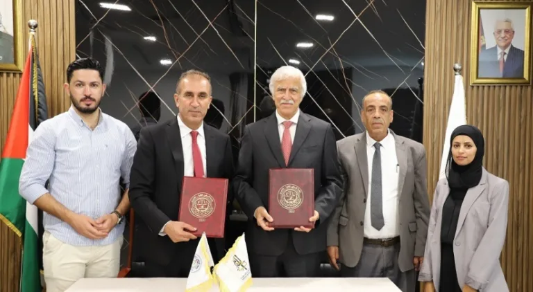ووقّع الاتفاقية، رئيس المكتبة الوطنية الفلسطينية الدكتور مروان عورتاني، ورئيس جامعة فلسطين التقنية – خضوري الدكتور حسين شنك، بحضور ممثلين عن المؤسستين.