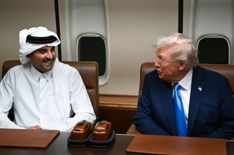 التقى ترمب أمير قطر الشيخ تميم بن حمد آل ثاني ورئيس الحكومة الشيخ محمد بن عبدالرحمن آل ثاني، على متن الطائرة إير فورس وان في قاعدة العديد الجوية التي تضم المقر العام الإقليمي للجيش الأميركي وآلافاً من الجنود الأميركيين. وقال “ما حققناه هو سلام مذهل في الشرق الأوسط، وكانا عاملاً أساسياً فيه”.