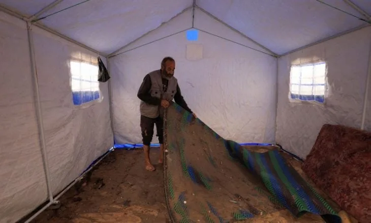 قال عبد الحكيم النجار، أحد النازحين في خان يونس، لـ”القدس العربي”: “خيمتنا التي نقيم فيها مع ستة أفراد من العائلة لم تصمد أمام الأمطار، وحاولت إغلاق الثقوب بقطعة بلاستيكية، لكن دون جدوى. اضطررت لنقل ما استطعت من أمتعتنا إلى خيمة أحد أقاربي مؤقتاً، إصلاح الخيمة وتجفيفها سيستغرق عدة أيام بعد انتهاء المنخفض”.