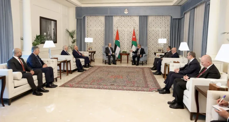 عمان-18/11/2025- اتفق رئيس الوزراء د. محمد مصطفى ورئيس الوزراء في المملكة الأردنية الهاشمية د. جعفر حسّان، خلال جلسة المباحثات التي عقدت اليوم في مقر رئاسة الوزراء في العاصمة الأردنية عمّان، على تعزيز التعاون الاقتصادي والمالي واللوجستي بين دولة فلسطين والمملكة الأردنية الهاشمية.