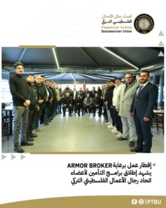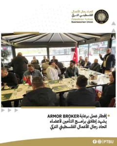 في أجواء راقية اتسمت بروح الشراكة والتفاعل الإيجابي، عقد اتحاد رجال الأعمال الفلسطيني التركي صباح أمس السبت لقاء إفطار تعارفي، بدعوة كريمة من شركة أرمور للتأمين التكافلي، وباستضافة مطعم البركة الفلسطيني، بحضور أعضاء مجلس إدارة الاتحاد: محمود الصغير (رئيس الاتحاد)، أحمد العشي (مسؤول العلاقات العامة)، أحمد يلماز (المسؤول المالي)، وبسام الحاج (مسؤول العلاقات الدولية والإعلام)، إلى جانب أعضاء الهيئة العامة، وأعضاء مجلس شباب الأعمال، وعدد من رجال الأعمال الفلسطينيين والعرب.