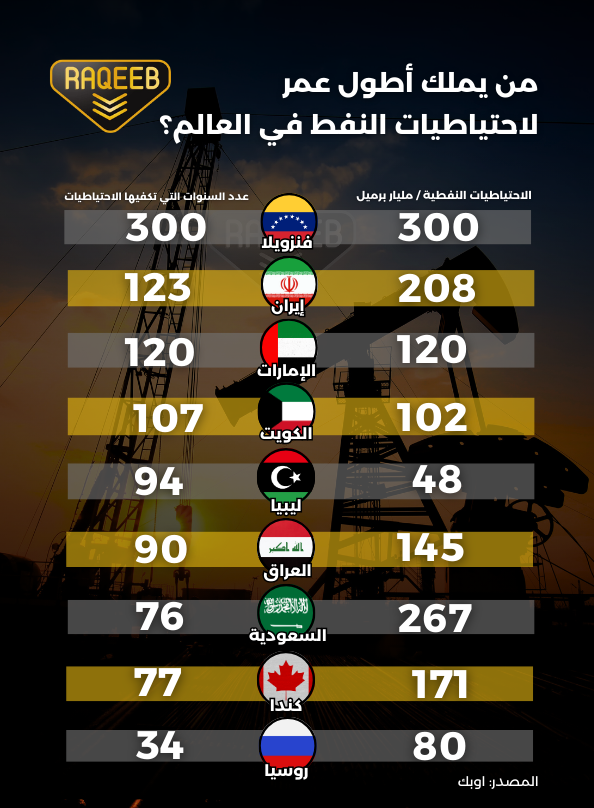 من يملك اطول عمر لاحتياطيات النفط في العالم؟