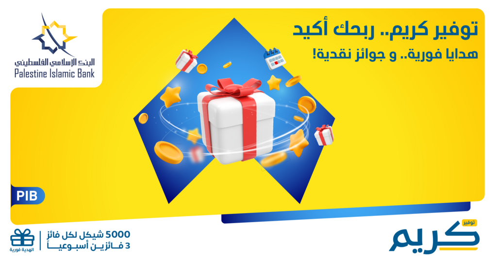 أطلق البنك الإسلامي الفلسطيني حملة حسابات التوفير “توفير كريم..ربحك أكيد” وذلك في إطار جهوده لتعزيز ثقافة الادخار في المجتمع وتحفيز العملاء على فتح حسابات توفير أو تنمية حساباتهم الحالية من خلال تقديم باقة مميزة من الهدايا الفورية والجوائز النقدية.