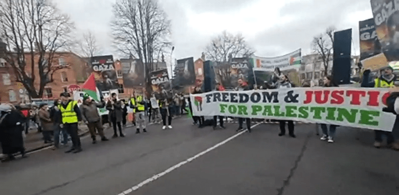 A massive demonstration in the Irish capital, Dublin, in support of Palestine