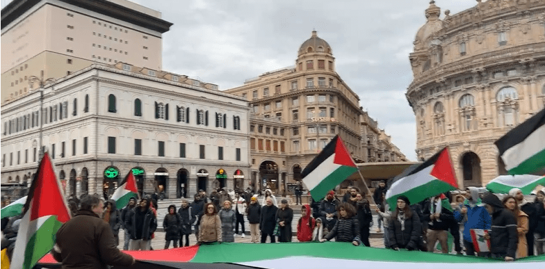 A protest sit-in in the Italian city of Genoa in support of Palestine and Gaza